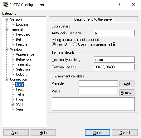 필자는 라즈베리파이에 자동 접속할 것이므로 아이디를 pi로 입력했다