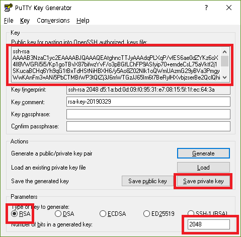 이때 Save private key 버튼을 눌러 키 파일도 저장하자