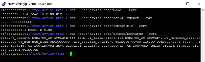 cat /proc/device-tree/chosen/bootargs | more