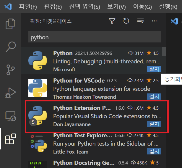 python for VSCode : 파이썬 구문강조 등 지원