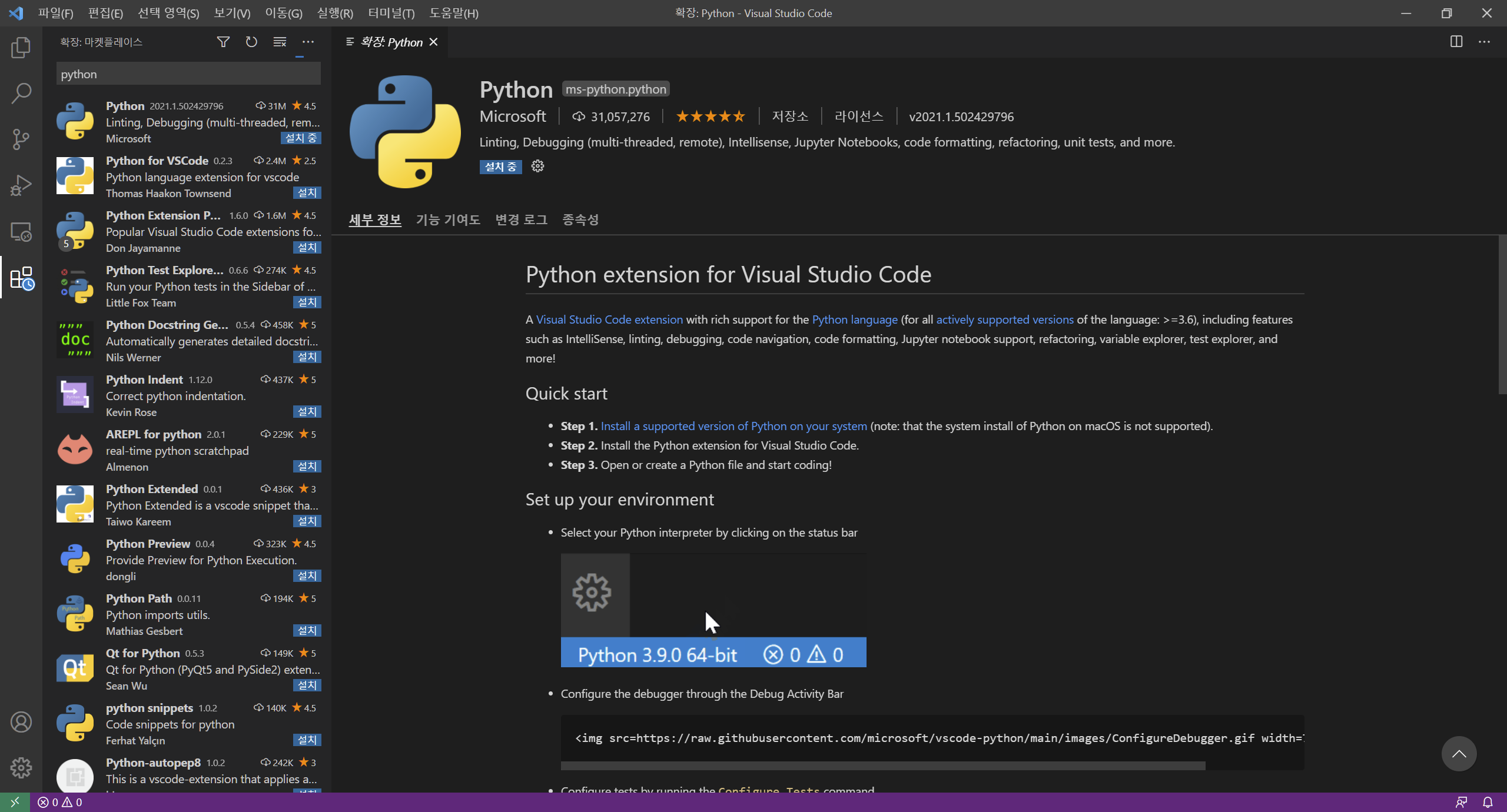 Python Extension Pack : 디버깅 지원
