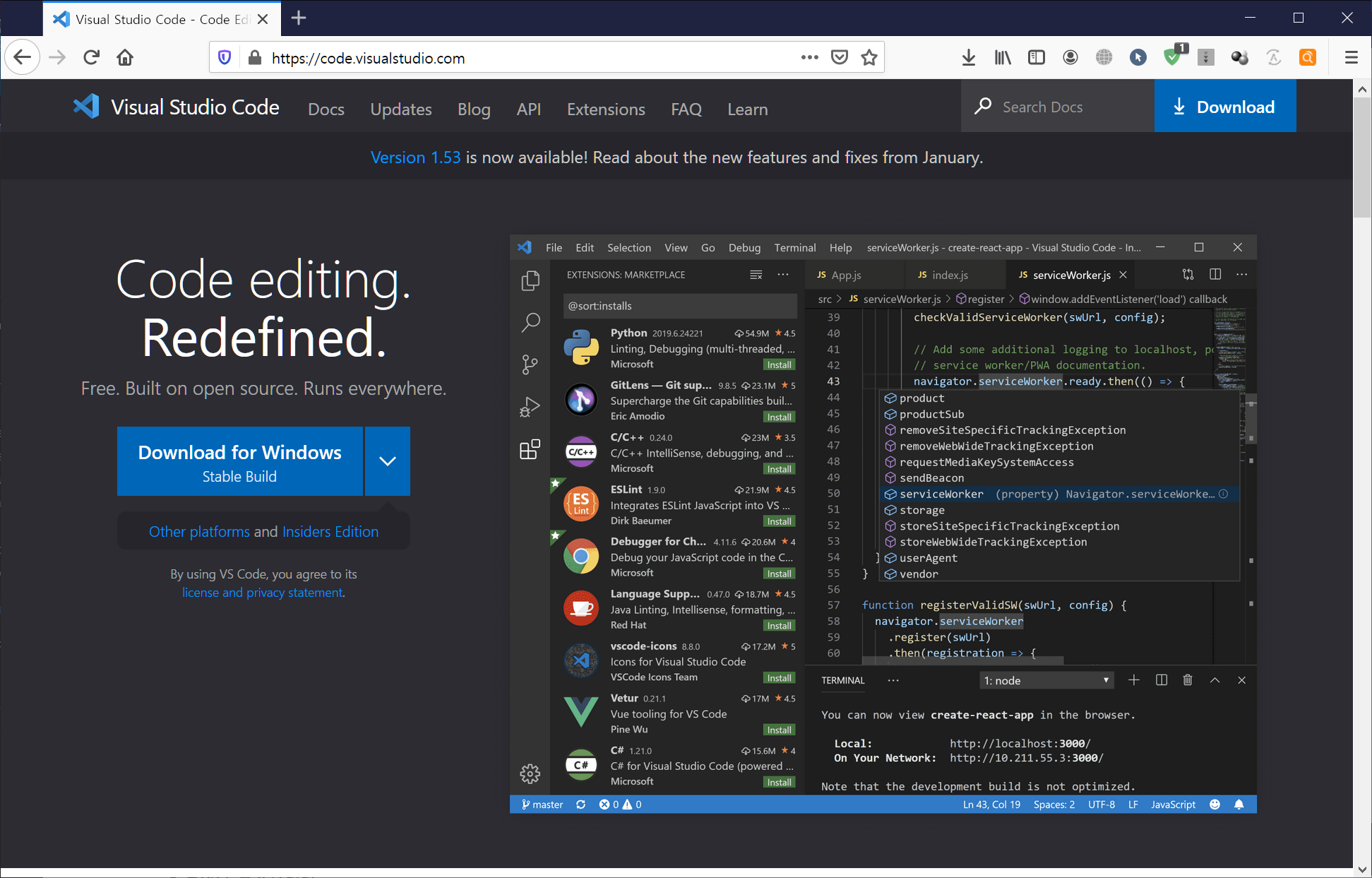 python : InteliSense, liniting, 디버깅, 코드탐색, Jupyter Notebook 지원 등의 기능 지원