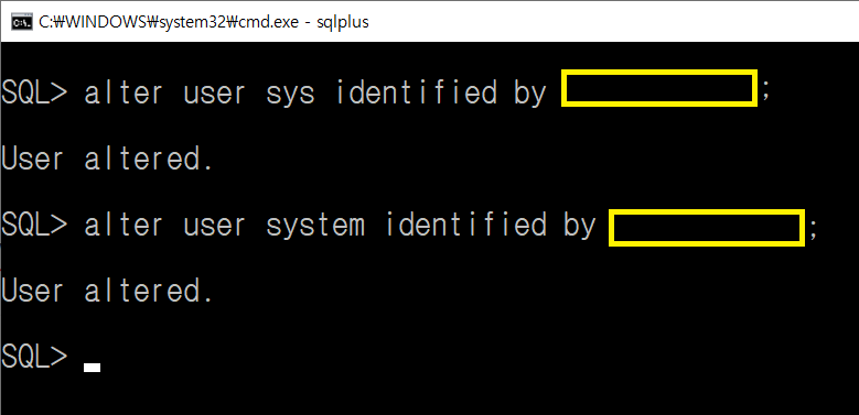 SQL> alter user sys identified by 암호;