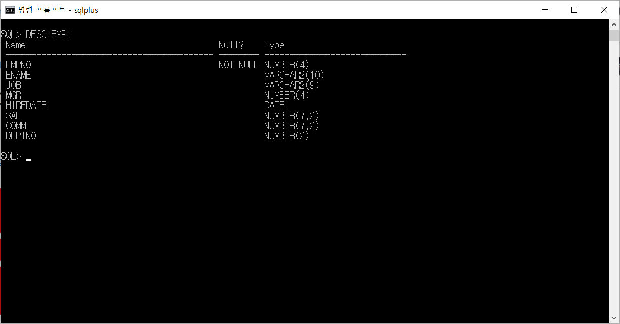 오라클 명령어 : DESE , DESCRIBE - 테이블 양식 정보 확인