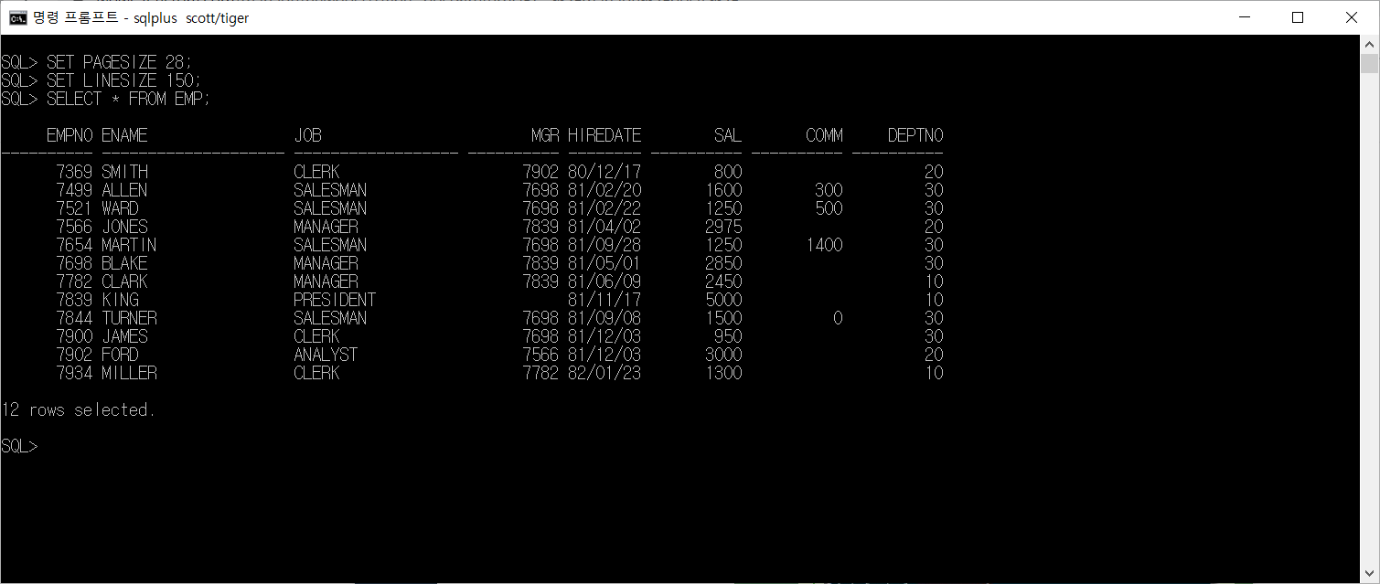 4. SET PAGESIZE 28;의 경우 한 화면의 라인수를 28줄로 설정해 달라고 하는 뜻입니다.