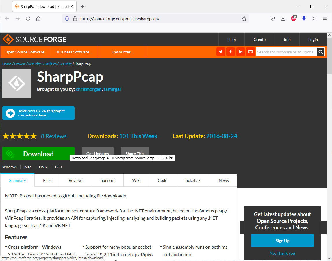 먼저 WinPcap 라이브러리를 설치해야 합니다.